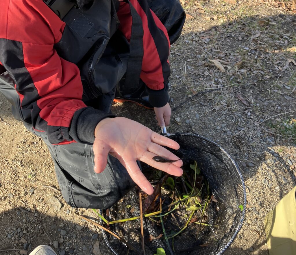 家の前の水路を覗き込むと、ドジョウが泳ぎ、モクズガニが身を潜めている。